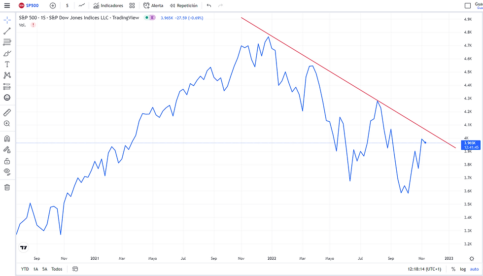 Lo que no podemos establecer es cuando se van a producir esas caídas, y viendo la gráfica del S&P 500 en semanal podemos ver que aún queda margen incluso para una subida antes de producirse la gran caída.